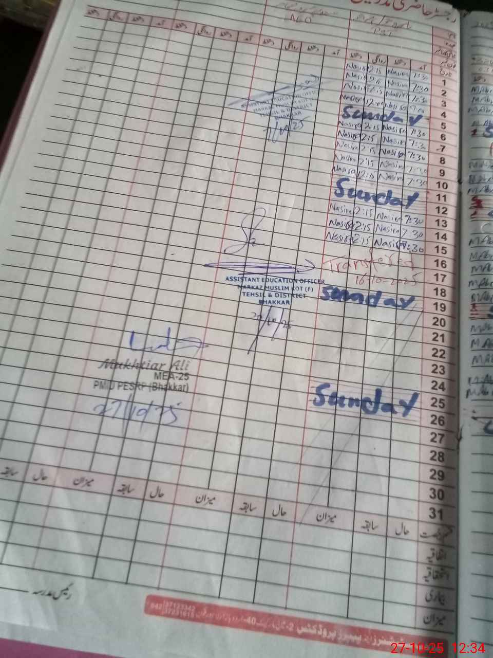 | Name: As**** Ya**** Designation: (School Headmaster's/Headmistress's) PST Phone/Cell Number: 03**** |