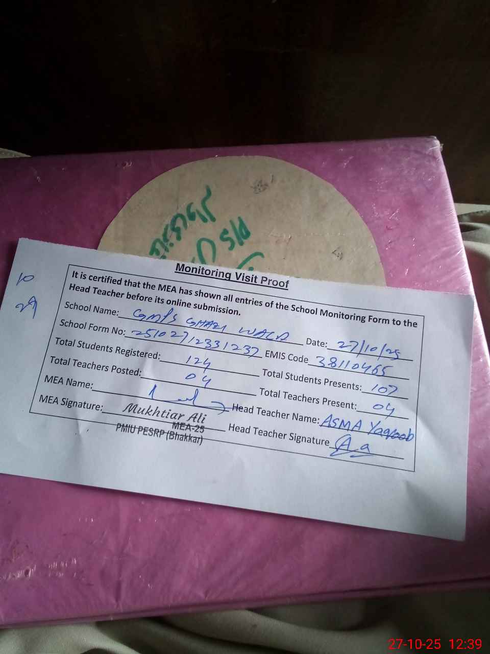 | EMIS Code: 38110465 | Name of School: GMPS GHAZI WALA | |||