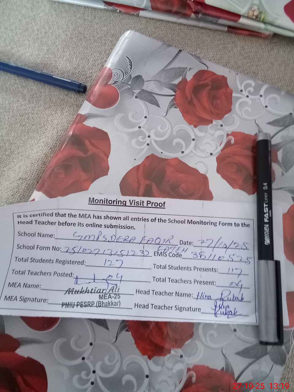 | Attendance Register | Head Teacher | MEA with School | Visit Proof |