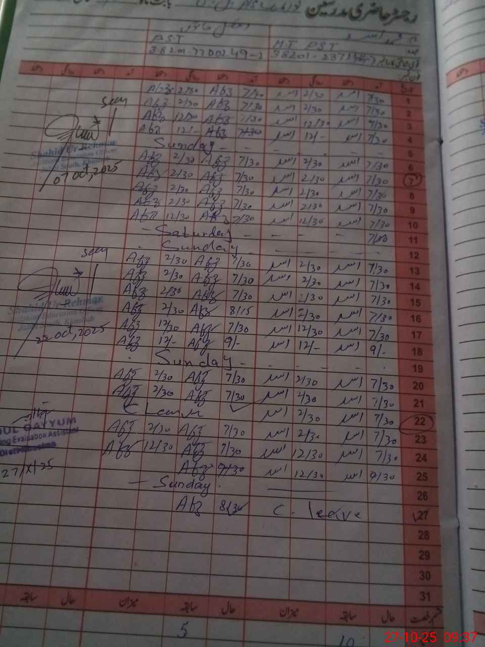 | 38**** | Af**** Kh**** | PST | Regular | 0 | 0 | 0 | 0 | 0 | 0 | 0 | 0 | 0 | Absent (Un-Authorized) |