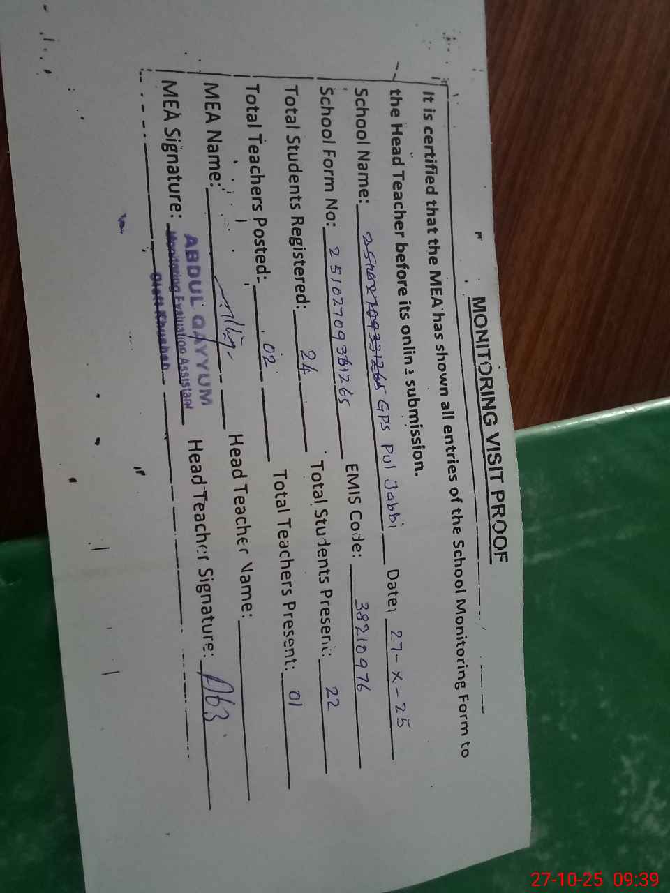 | EMIS Code: 38210976 | Name of School: GPS PUL JABBI | |||