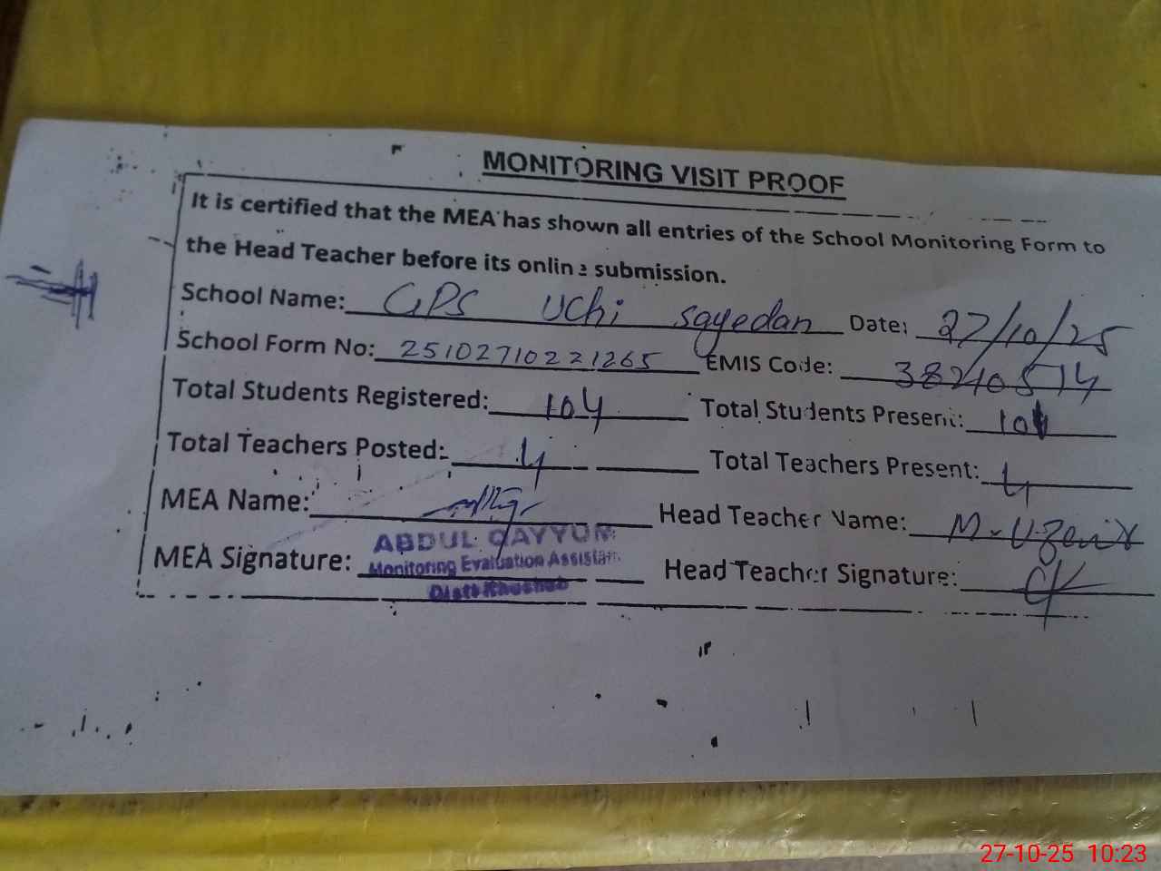 | EMIS Code: 38210514 | Name of School: GPS UCHI SAYEDAN | |||