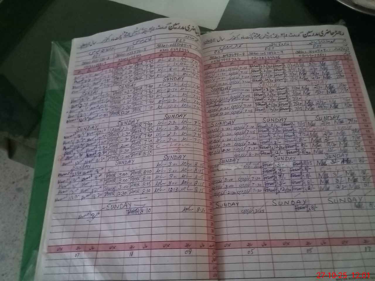 | CNIC | Full Name | Designation | R/C | Absence During Last Calender Month |