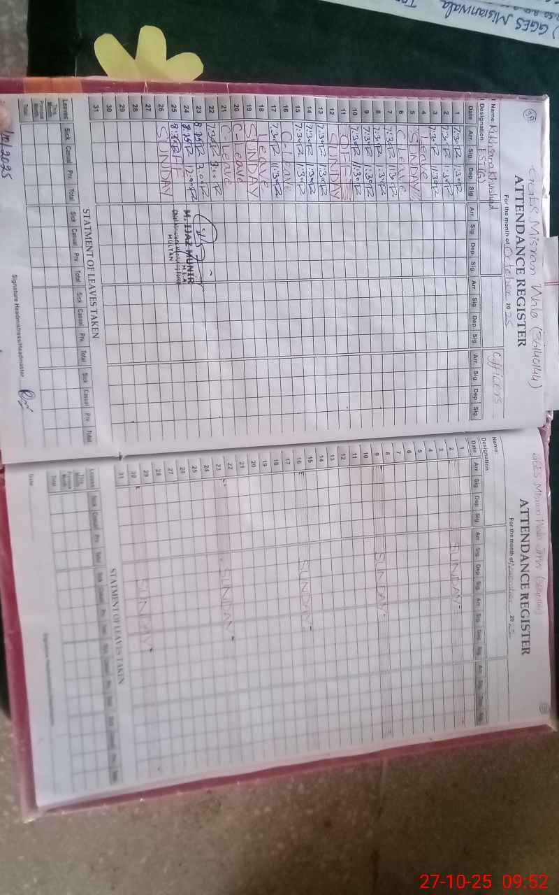 | Attendance Register | Head Teacher | MEA with School | Visit Proof |
