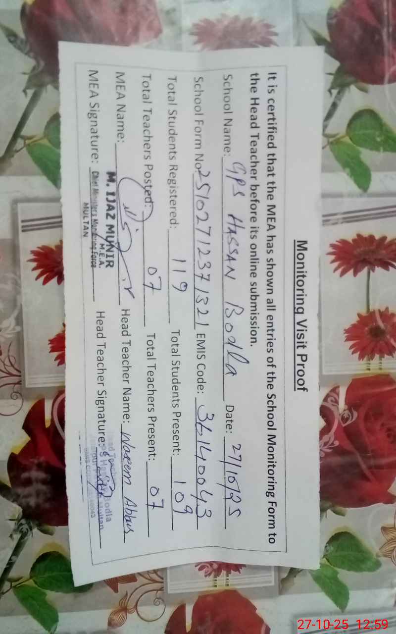 | EMIS Code: 36140043 | Name of School: GPS HASSAN BODLA | |||