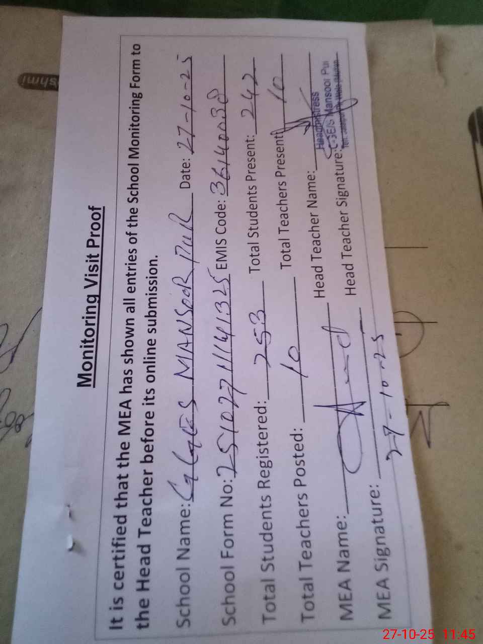 | EMIS Code: 36140038 | Name of School: GGES MANSOOR PUR | |||