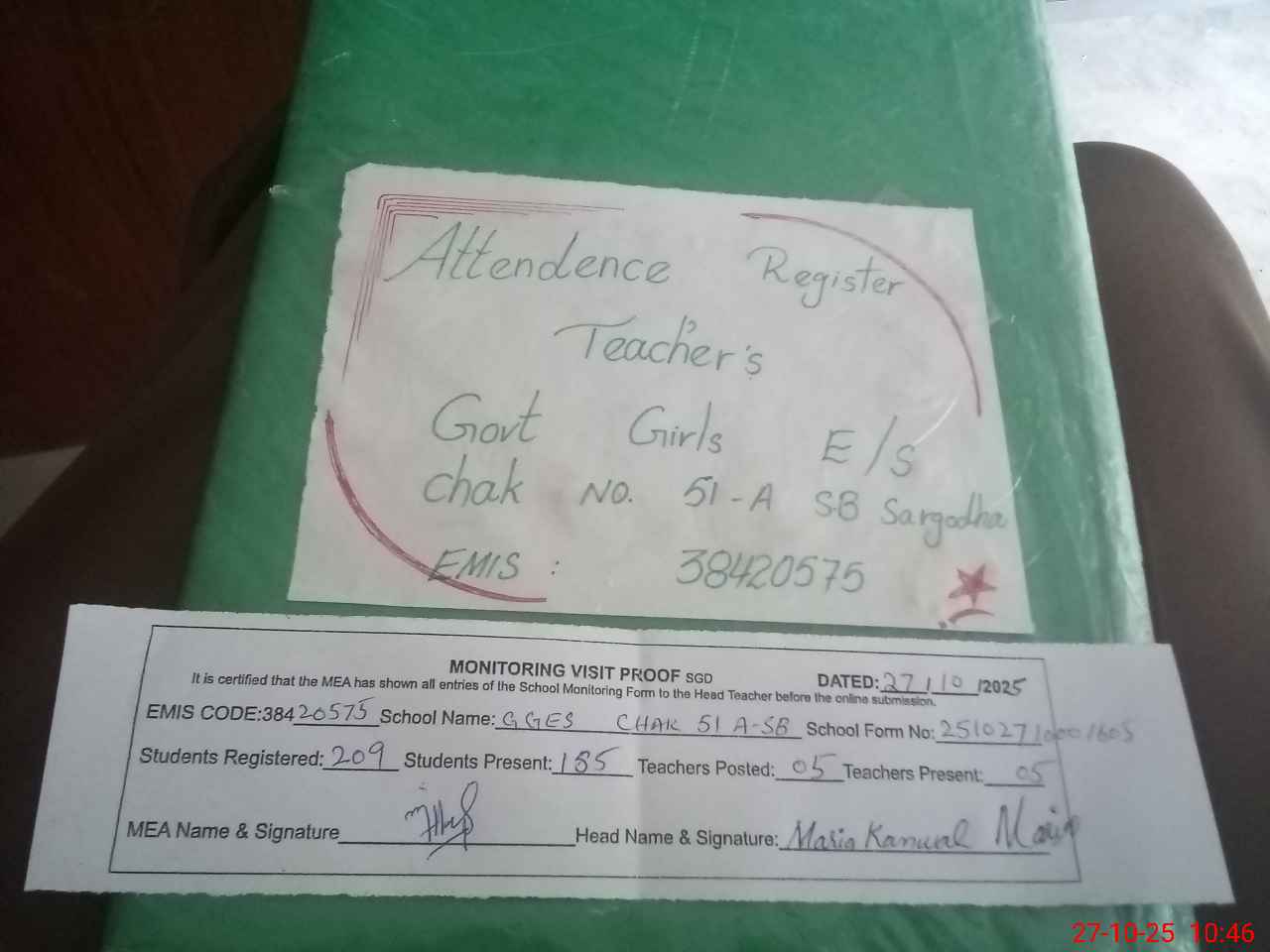 | EMIS Code: 38420575 | Name of School: GGES CHAK NO.51 A SB | |||