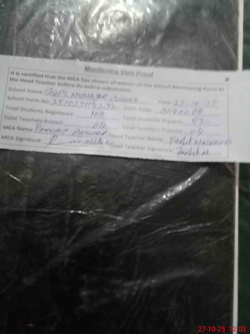 | EMIS Code: 31140288 | Name of School: GGPS MUHAJAR COLONY | |||