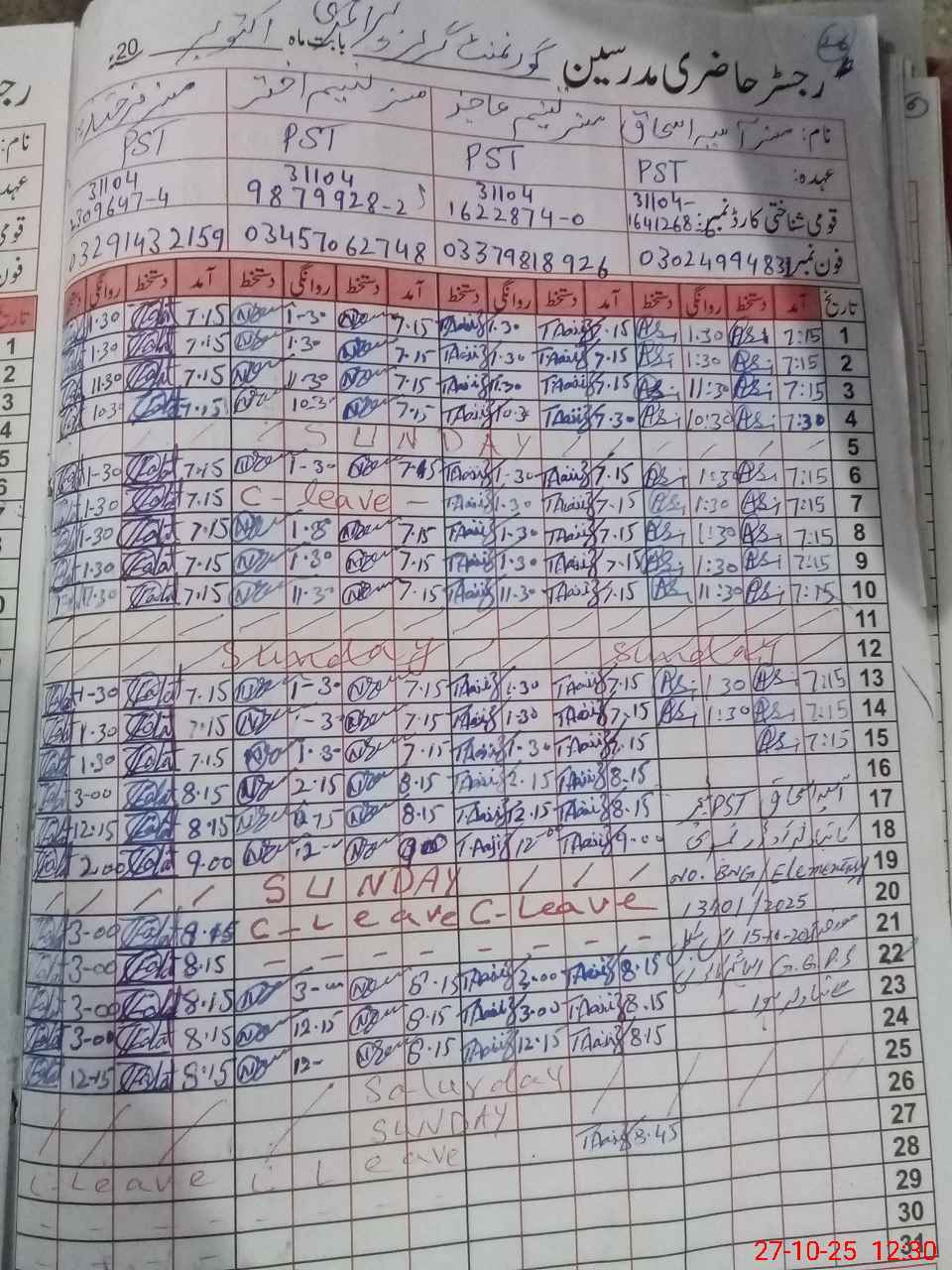 | 31**** | Fa**** Za**** | PST | Regular | 2 | 0 | 0 | 0 | 0 | 0 | 0 | 0 | 2 | Casual |