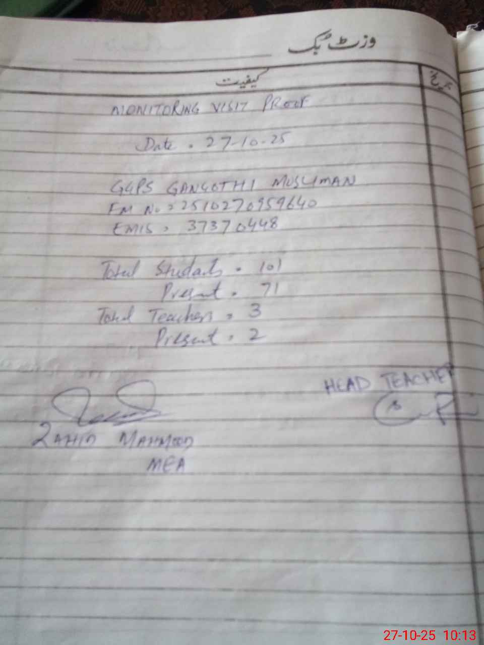 | EMIS Code: 37370448 | Name of School: GGPS GANGOHOTI MUSLIMAN | |||