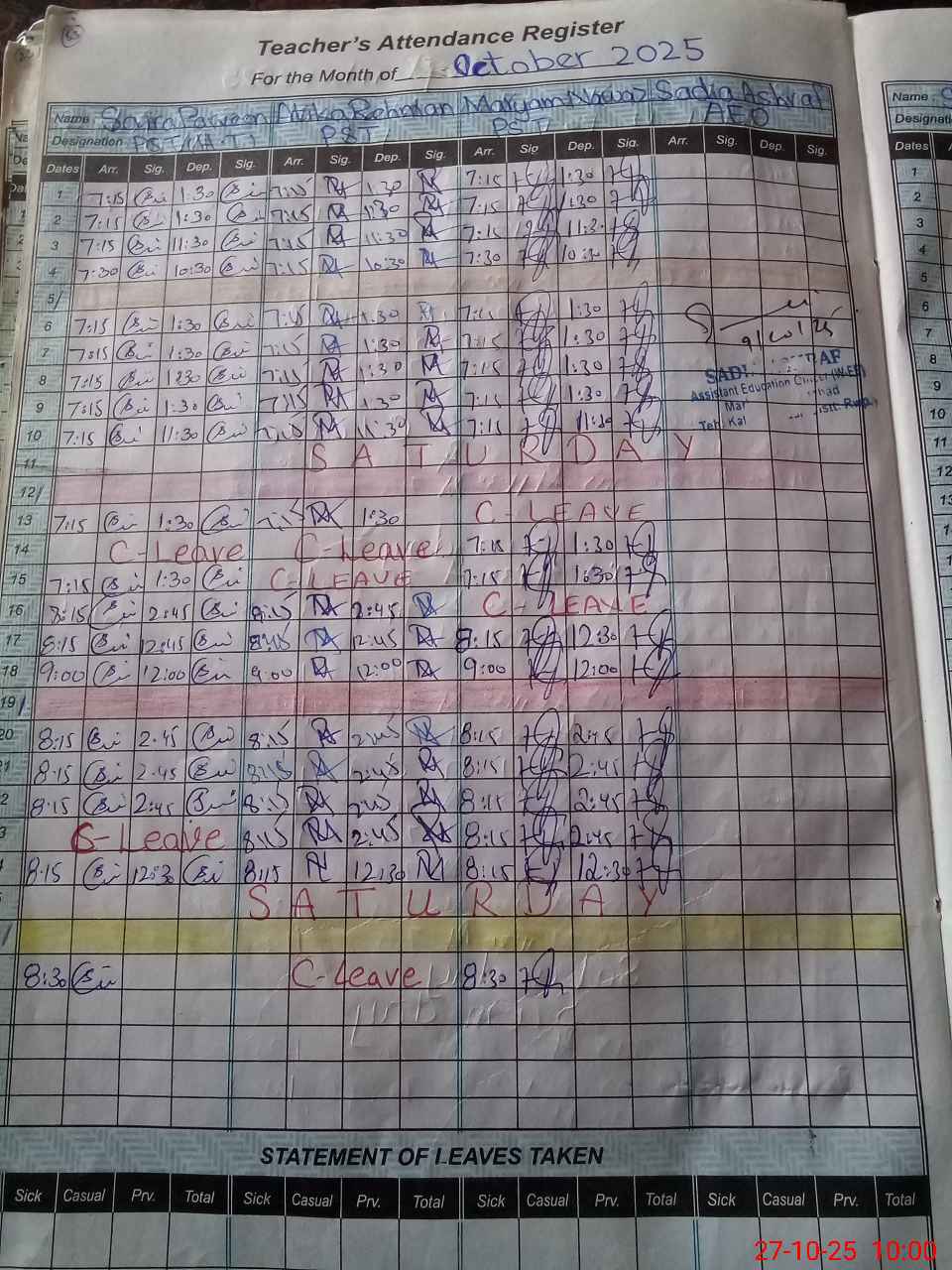 | Name: Sa**** Pa**** Designation: (School Headmaster's/Headmistress's) PST Phone/Cell Number: 03**** |