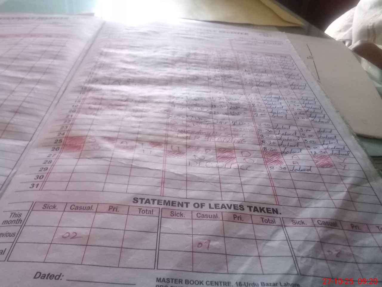 | CNIC | Full Name | Designation | R/C | Absence During Last Calender Month |