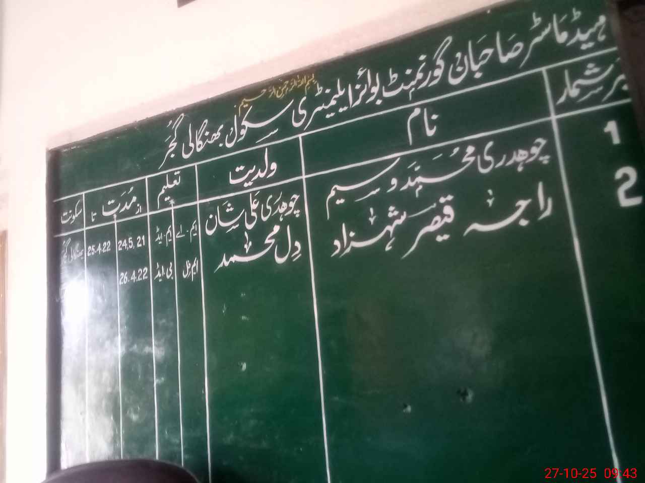 | Name: Bu**** Ka**** Designation: (School Headmaster's/Headmistress's) EST Phone/Cell Number: 03**** |