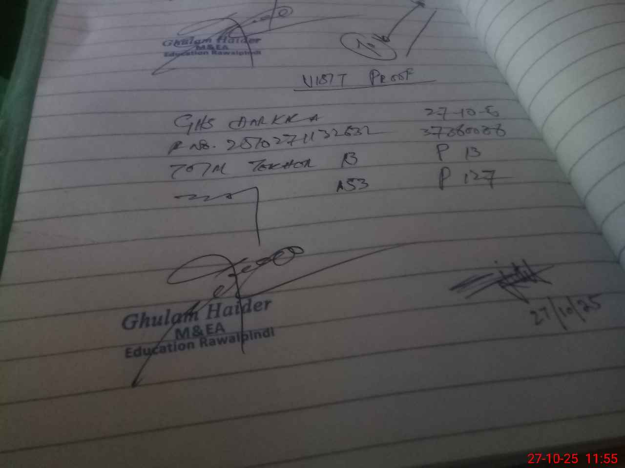 | Name: SA**** JA**** Designation: (School Headmaster's/Headmistress's) HEADMASTER Phone/Cell Number: 03**** |