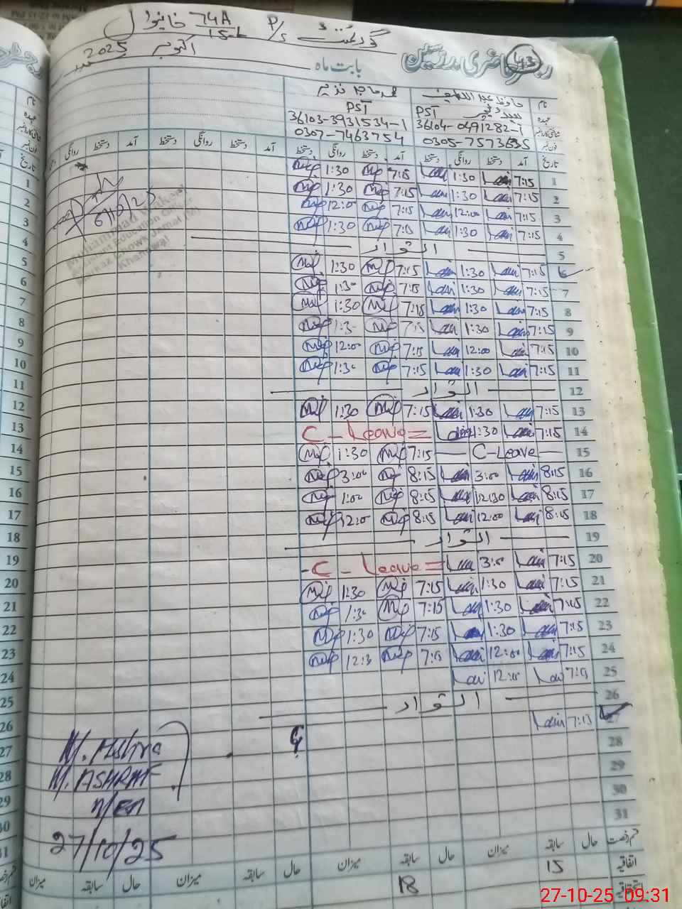 | Remarks (Use Separate Page if Required): Note MUHAMMAD MAJID NAZIR PST ABSENT REACED IN SCHOOL AT 0936 hrs | |||||