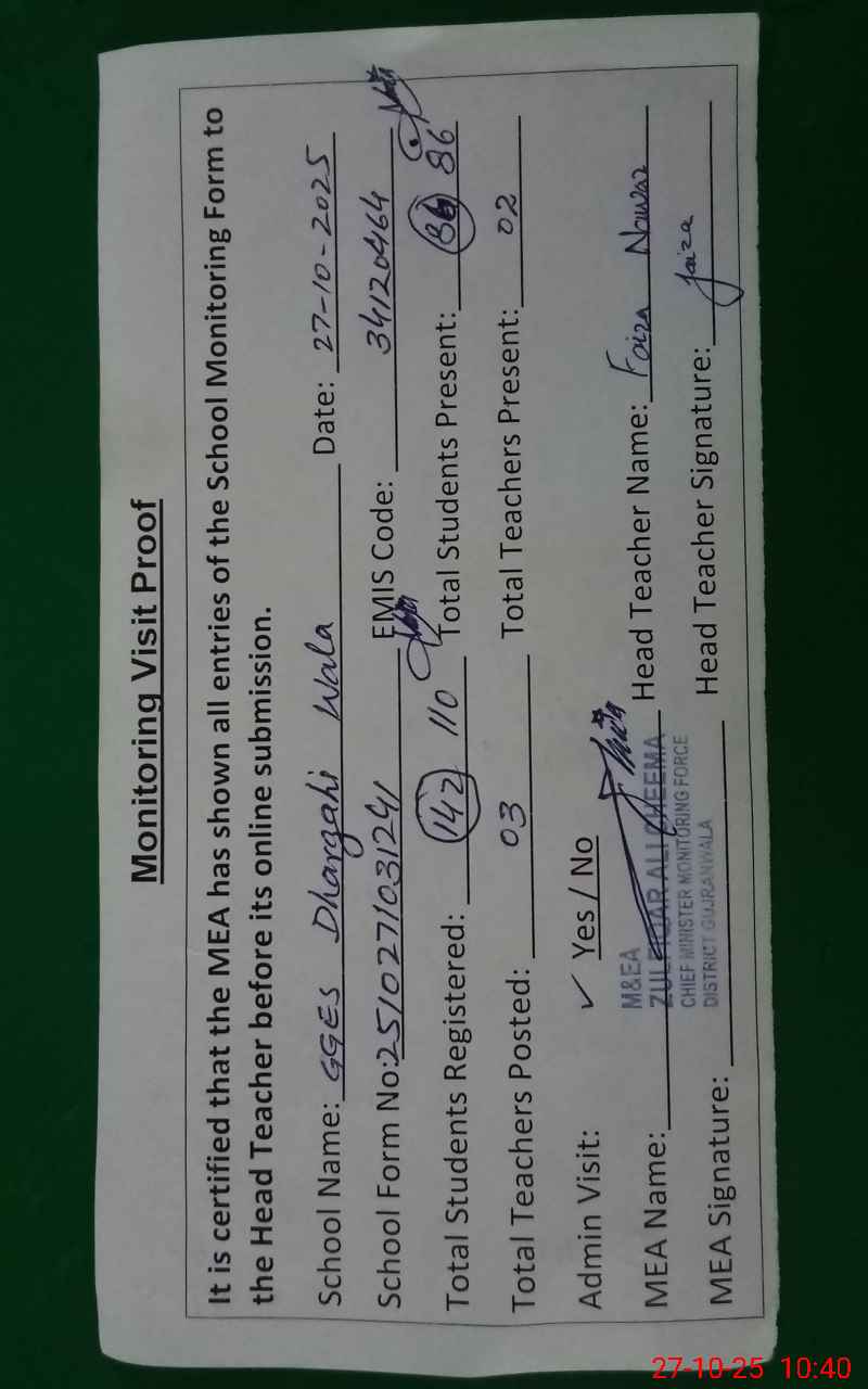 | EMIS Code: 34120464 | Name of School: GGES DARGAHI WALA | |||