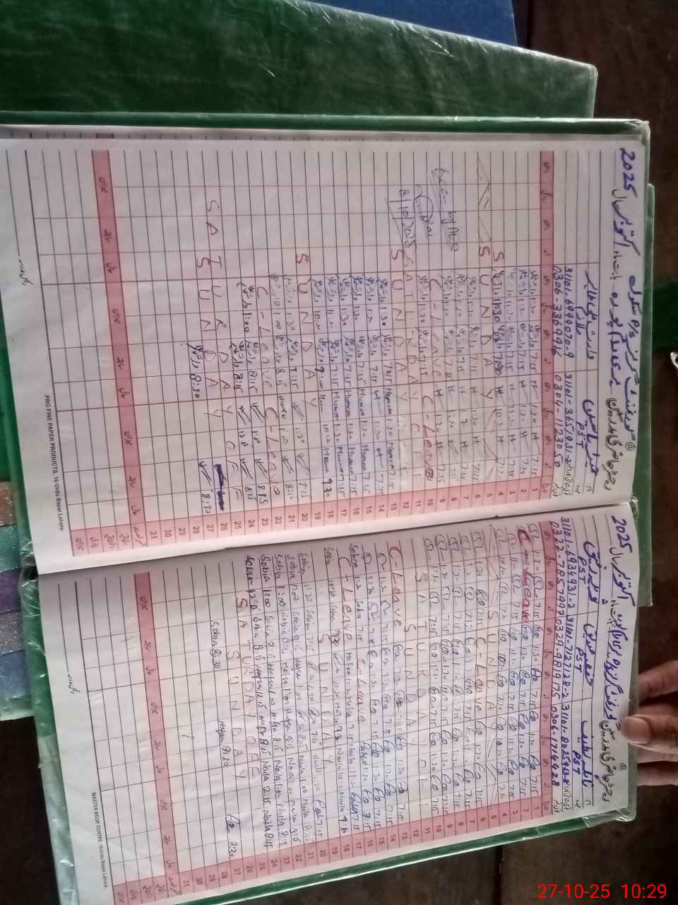 | CNIC | Full Name | Designation | R/C | Absence During Last Calender Month |