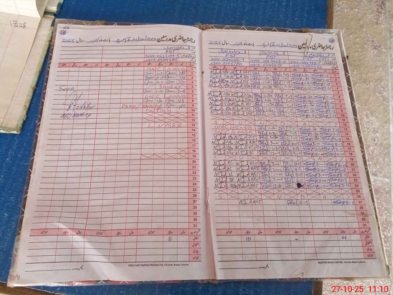 | CNIC | Full Name | Designation | R/C | Absence During Last Calender Month |