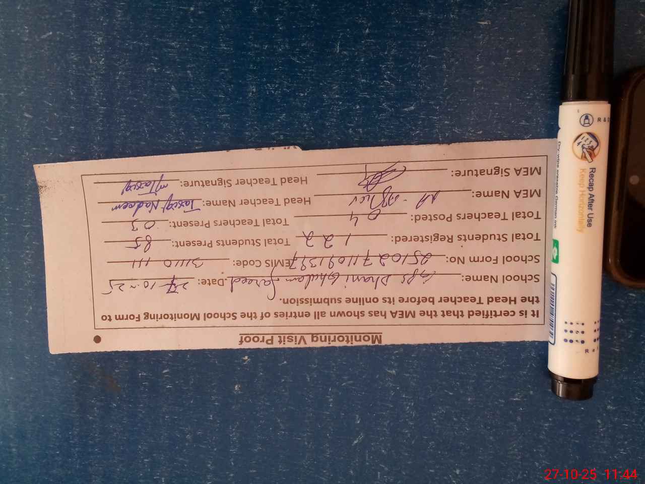 | Attendance Register | Head Teacher | MEA with School | Visit Proof |