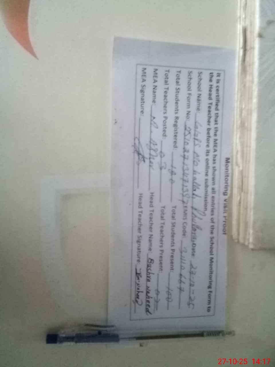 | EMIS Code: 31110667 | Name of School: GGPS MOHALLAH PHULARWAN | |||