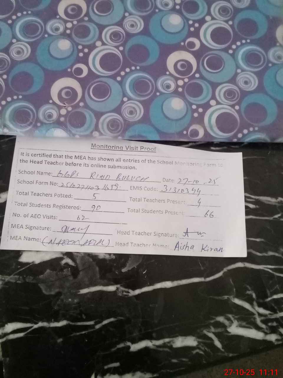 | EMIS Code: 31310344 | Name of School: GGPS RIND BULUCH | |||