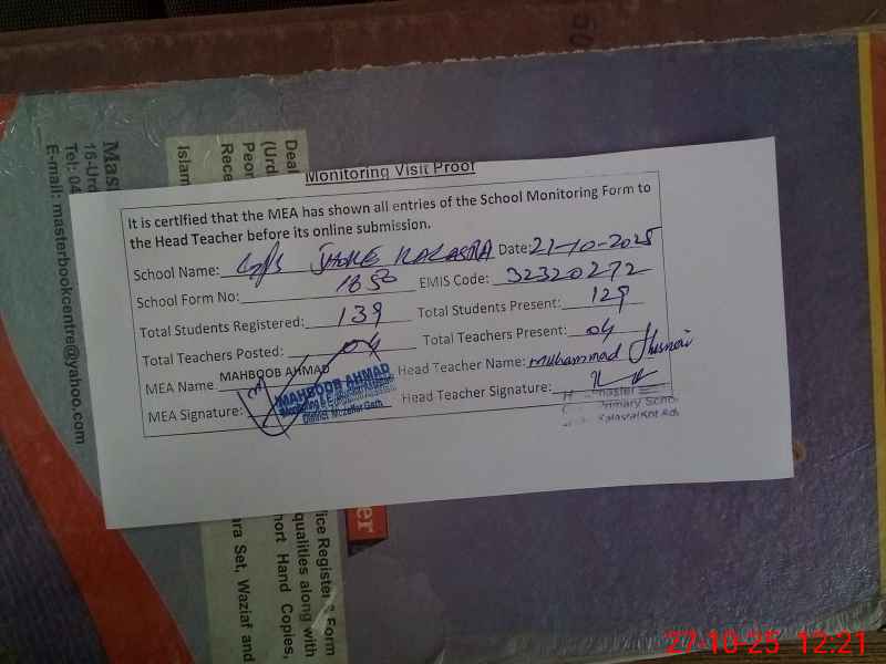 | EMIS Code: 32320272 | Name of School: GPS JHOKE KALASRA | |||