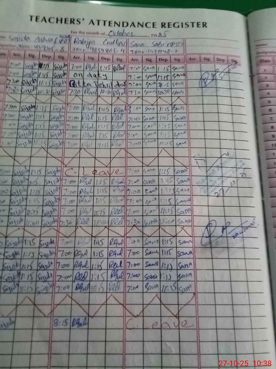 | CNIC | Full Name | Designation | R/C | Absence during last cal. month |