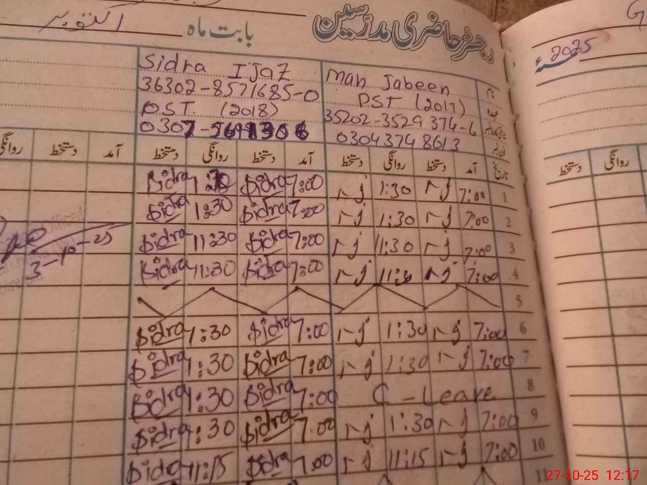 | Name: SA**** TA**** Designation: (School Headmaster's/Headmistress's) PST Phone/Cell Number: 03**** |