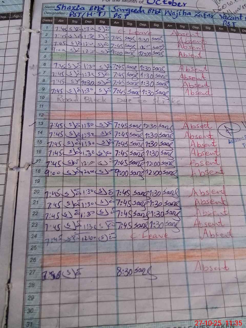 | 37**** | Wa**** Za**** | PST | Regular | 0 | 0 | 0 | 0 | 0 | 0 | 0 | 0 | 0 | Absent (Un-Authorized) |