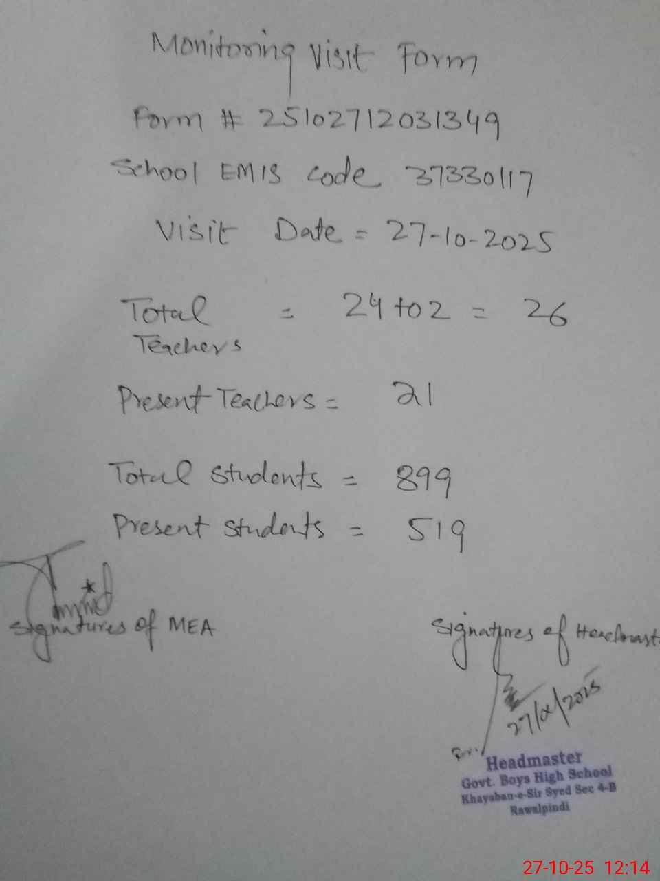 | EMIS Code: 37330117 | Name of School: GHS KHAYABAN-E-SIR SYED SECTOR 4-B | |||