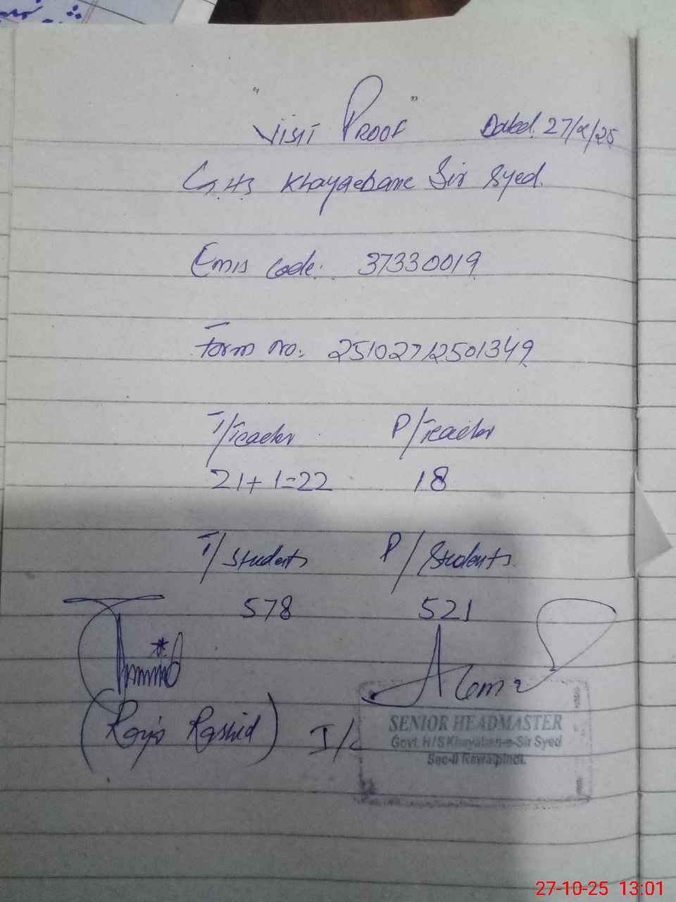 | EMIS Code: 37330019 | Name of School: GHS KHAYABAN-E-SIR SYED | |||