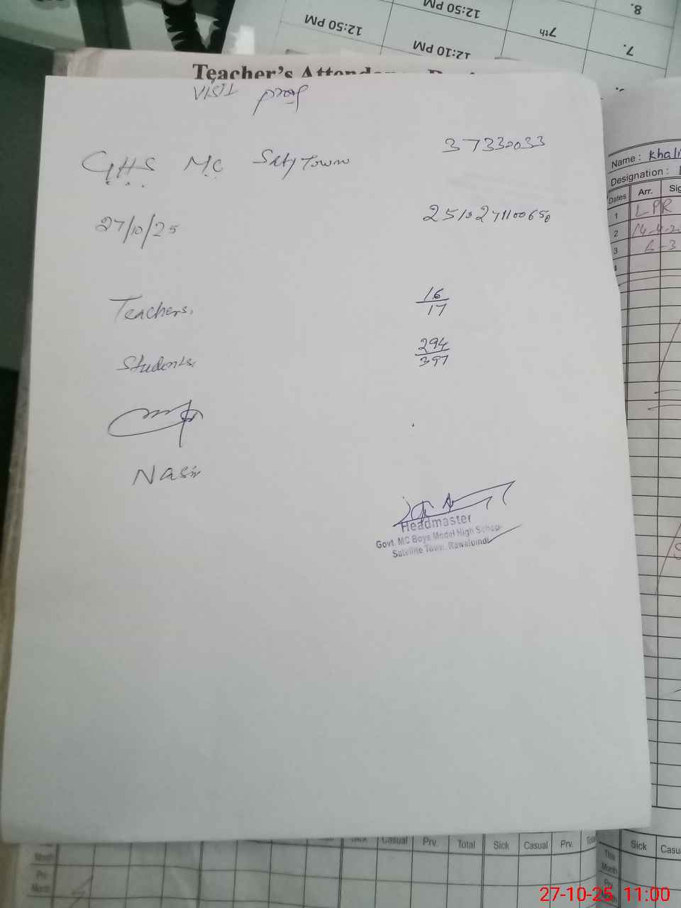 | Name: Za**** Ak**** Designation: (School Headmaster's/Headmistress's) Headmaster Phone/Cell Number: 03**** |