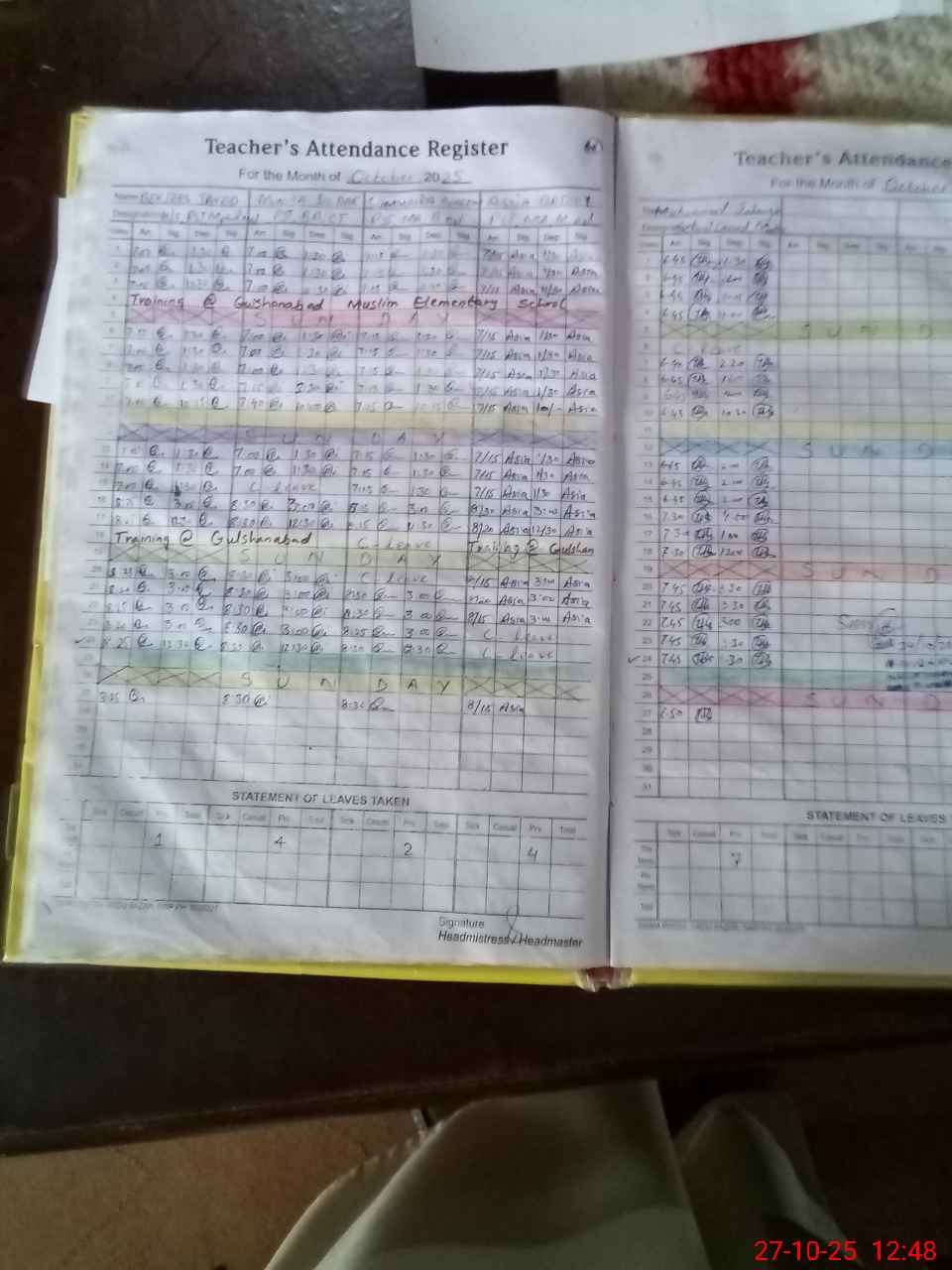 | Leave | Duty | Absent | Maternity | Medical | Ex- Pak |