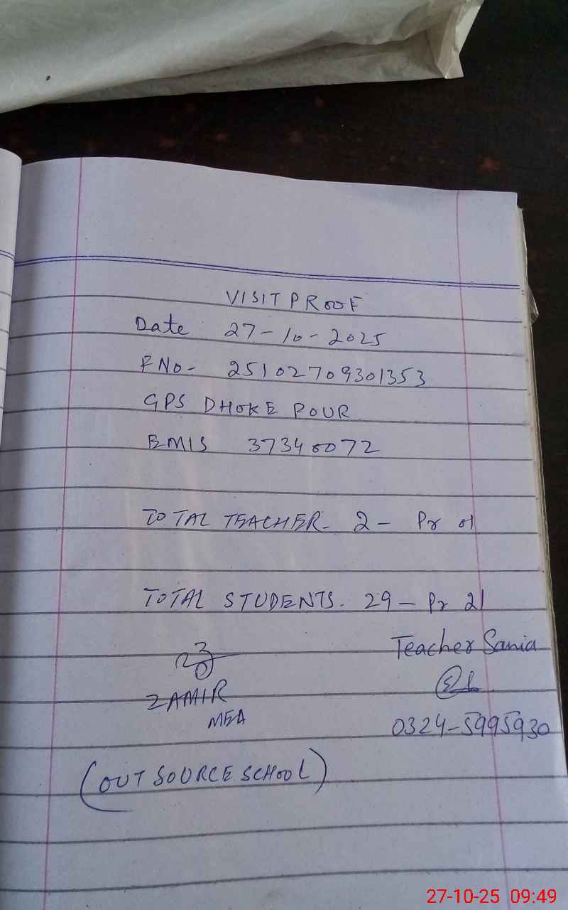 | EMIS Code: 37340072 | Name of School: GPS DHOKE POUR | |||