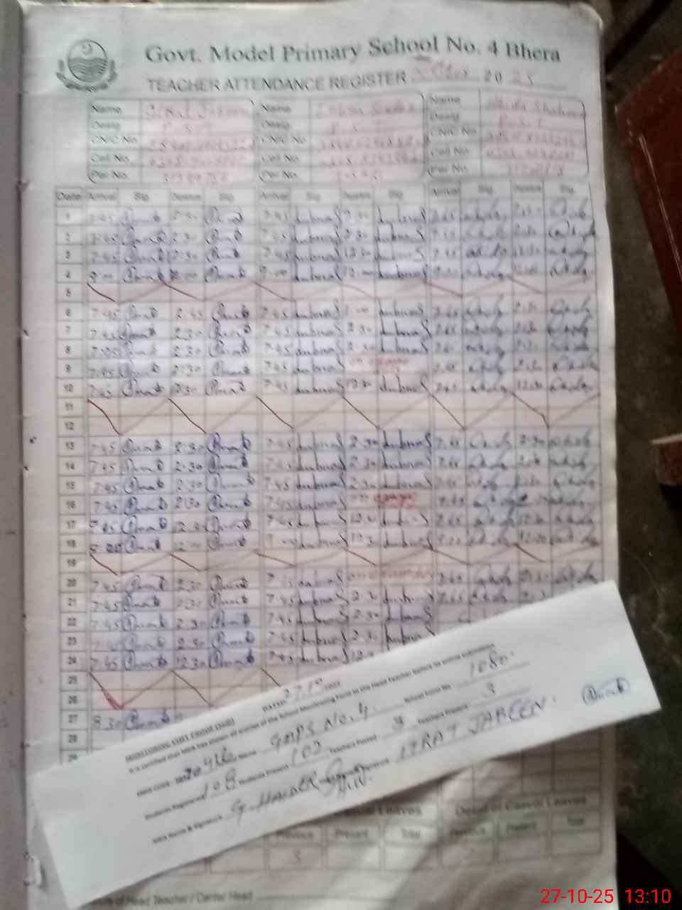 | Name: IT**** JA**** Designation: (School Headmaster's/Headmistress's) PST Phone/Cell Number: 03**** |