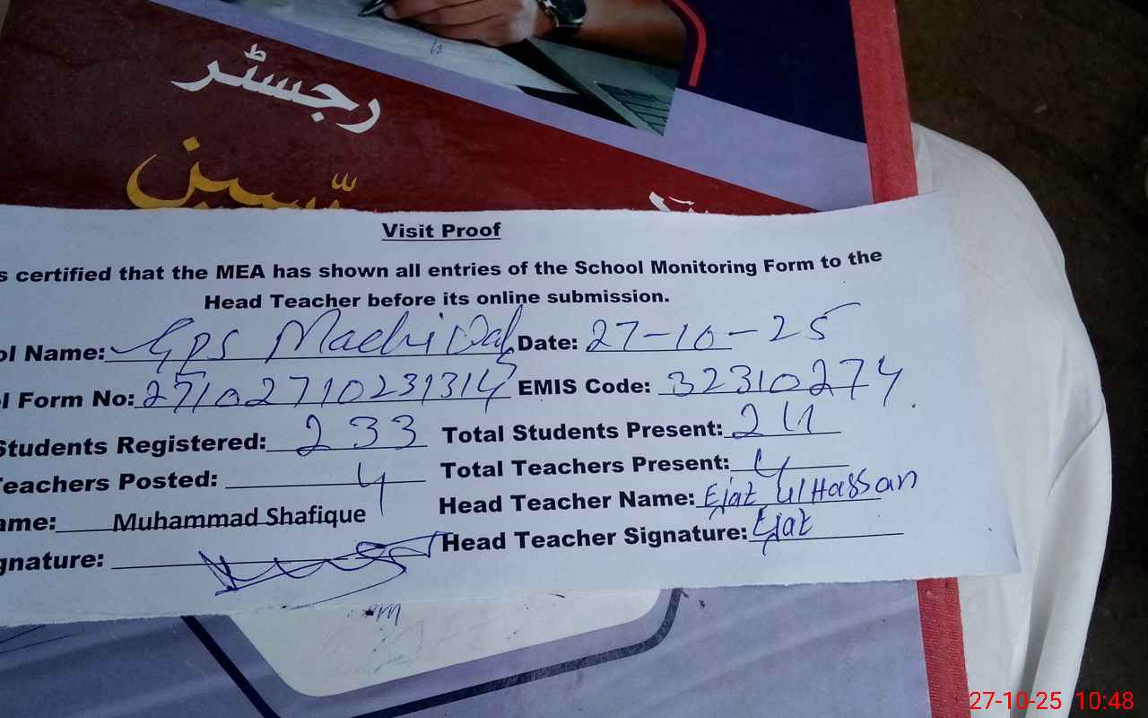 | EMIS Code: 32310274 | Name of School: GPS MACHI WALA | |||