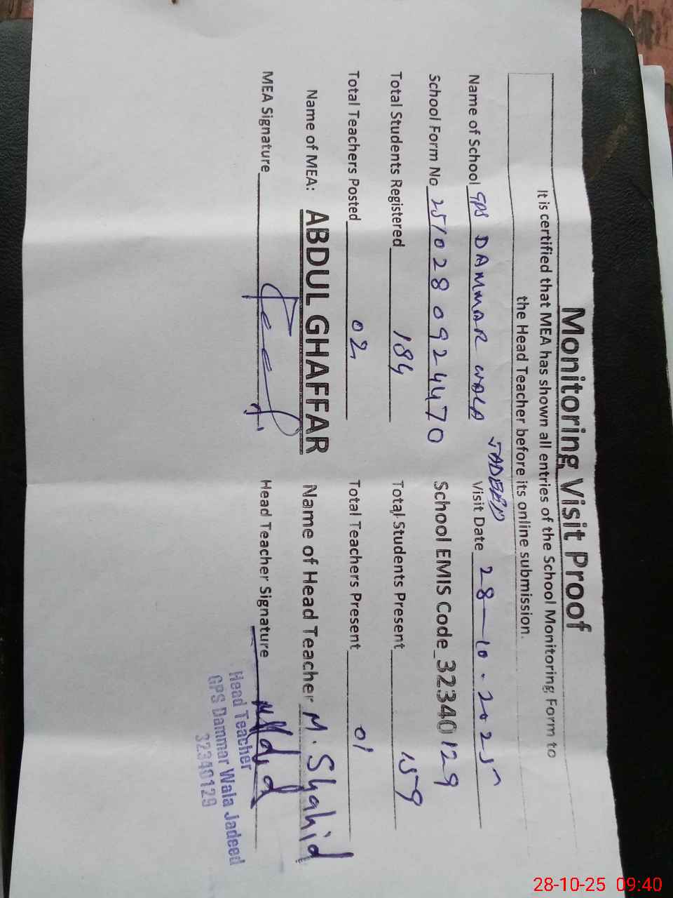 | EMIS Code: 32340129 | Name of School: GPS DAMMAR WALA JADEED | |||