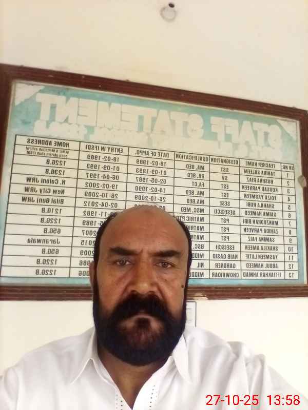 | Name: TA**** SA**** Designation: (School Headmaster's/Headmistress's) S.S.T.(GENERAL) Phone/Cell Number: 03**** |