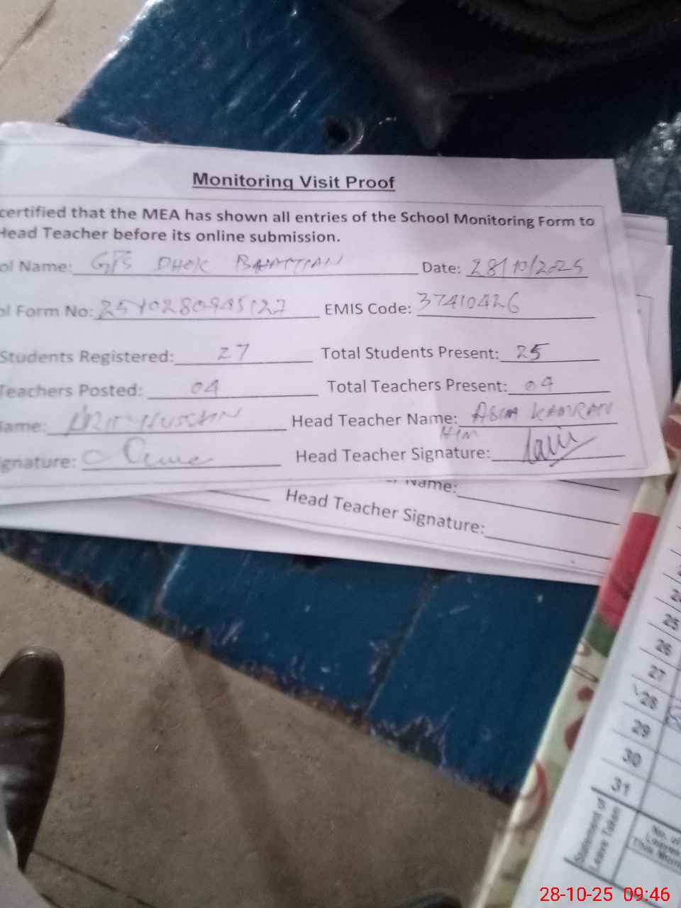 | EMIS Code: 37410426 | Name of School: GPS DHOK BHATIAN | |||