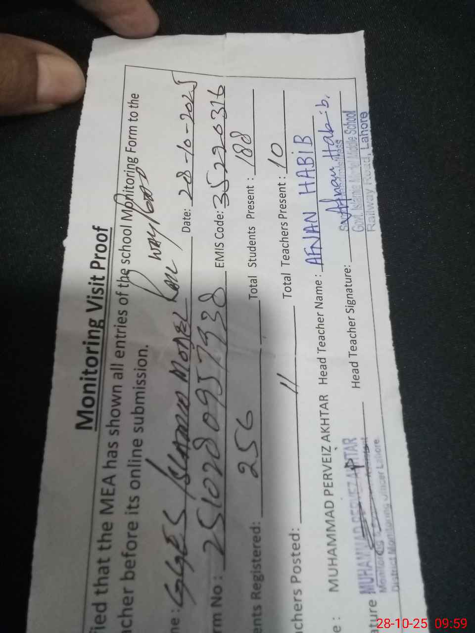 | EMIS Code: 35220316 | Name of School: GGES ISLAMIA MODEL MIDDLE SCHOOL, RAILWAY ROAD, LAHORE | |||
