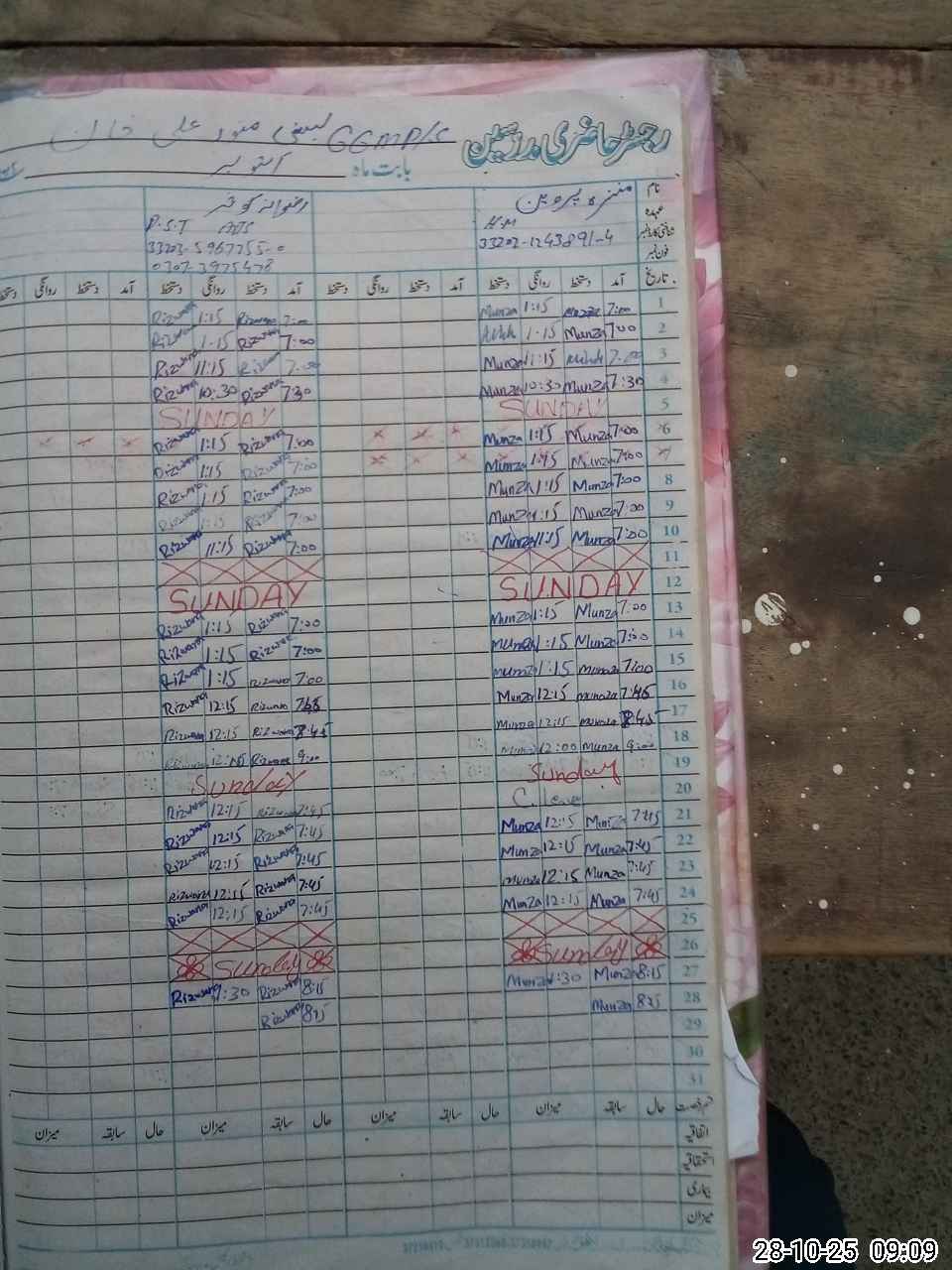 | CNIC | Full Name | Designation | R/C | Absence During Last Calender Month |