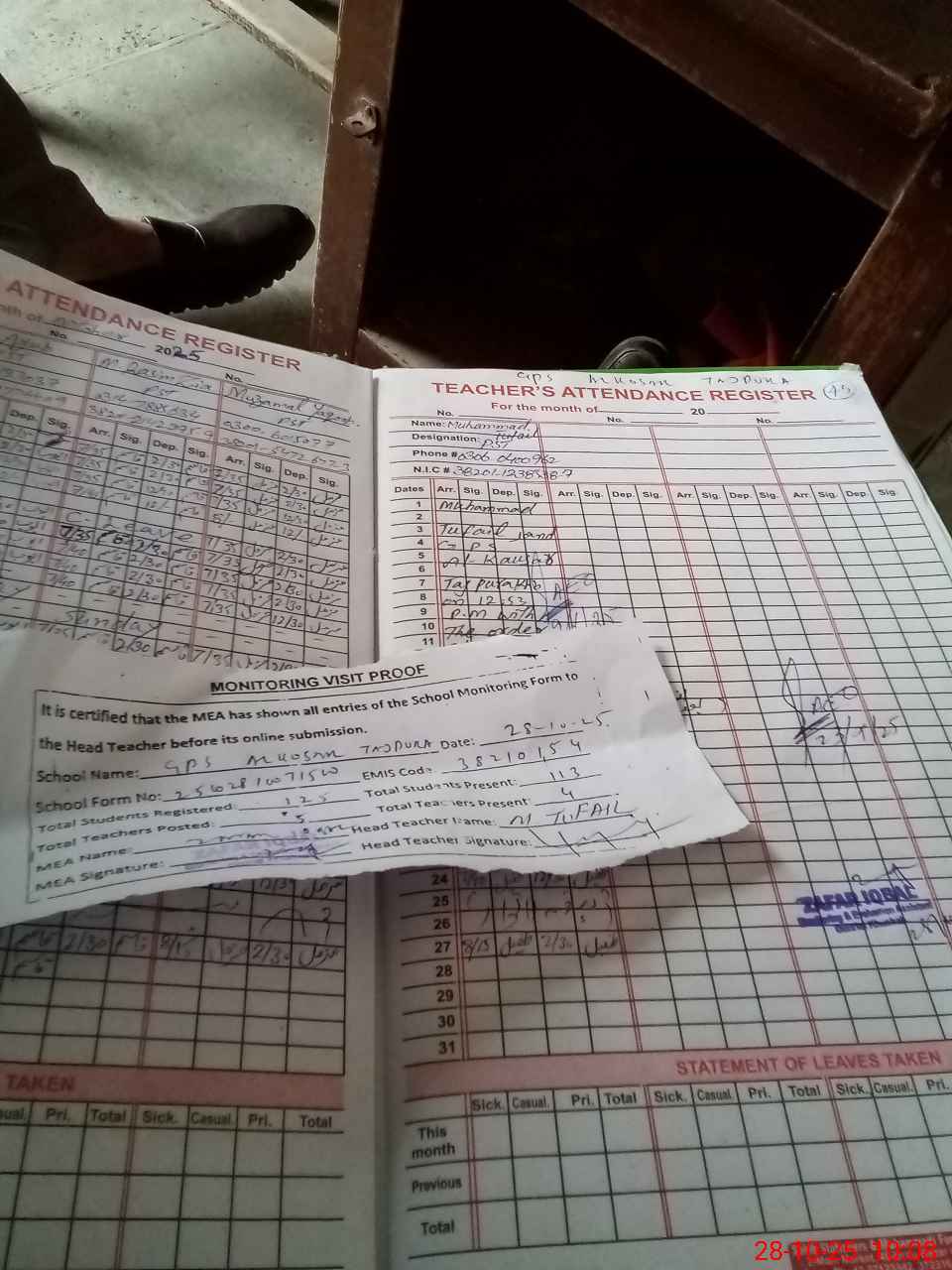 | Attendance Register | Head Teacher | MEA with School | Visit Proof |