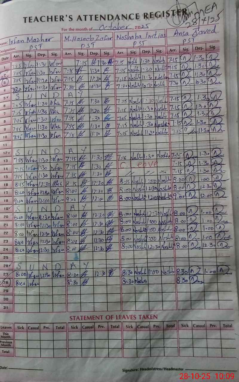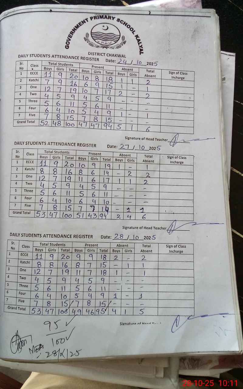 | Attendance Register | Head Teacher | MEA with School | Visit Proof |