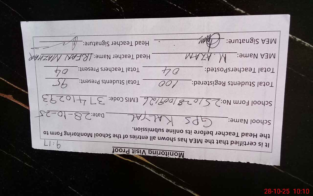 | EMIS Code: 37410293 | Name of School: GPS KALYAL | |||