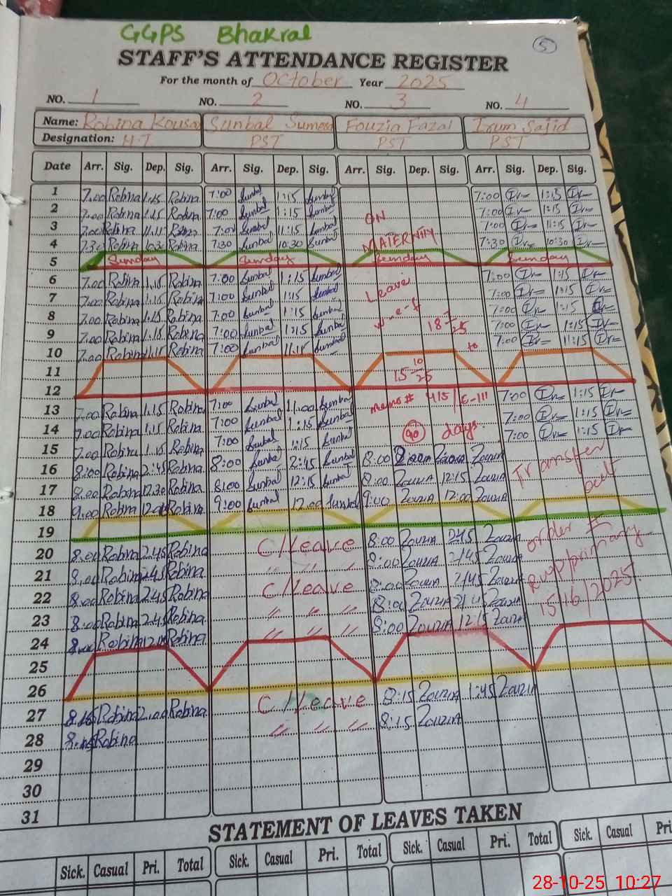 | Leave | Duty | Absent | Maternity | Medical | Ex- Pak |