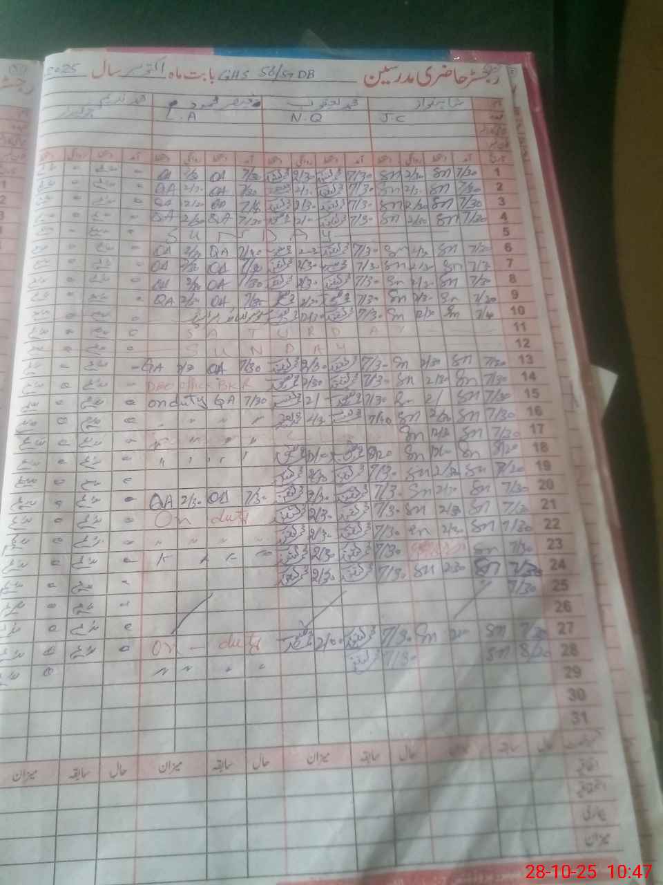 | CNIC | Full Name | Designation | R/C | Absence During Last Calender Month |