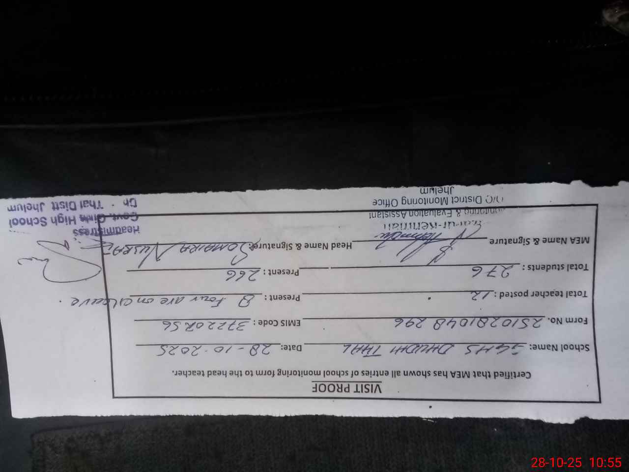 | Certified that this School was Inspected by the Undersigned MEA/DMO Today and the Information Stated Above is as Per Record. | |||||