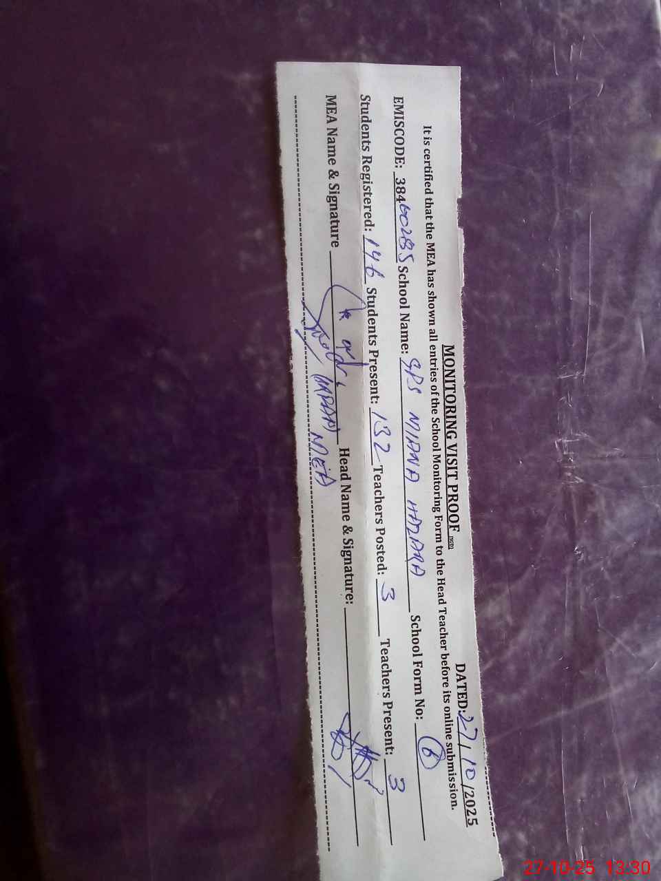 | Certified that this School was Inspected by the Undersigned MEA/DMO Today and the Information Stated Above is as Per Record. | |||||