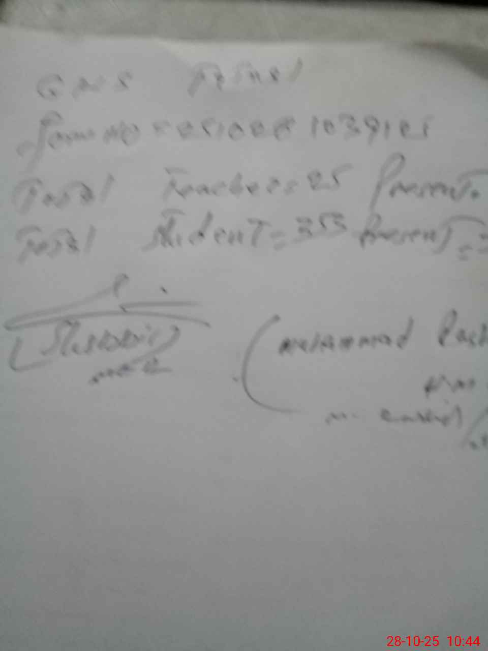 | Name: Mu**** Ra**** Designation: (School Headmaster's/Headmistress's) SNR HEADMASTER Phone/Cell Number: 03**** |