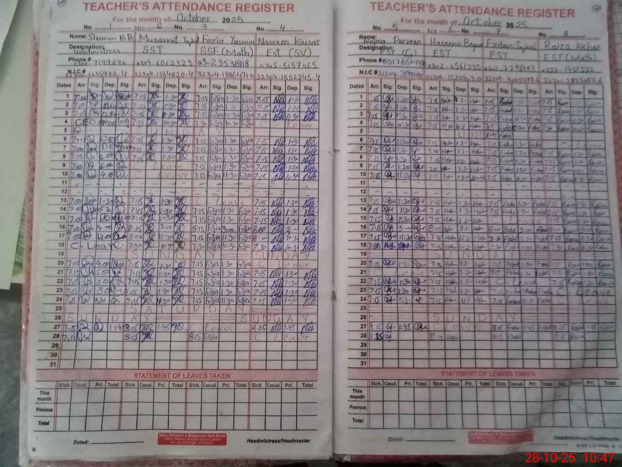 | Name: As**** Ya**** Designation: (School Headmaster's/Headmistress's) I/C HEADMISTRES Phone/Cell Number: 03**** |